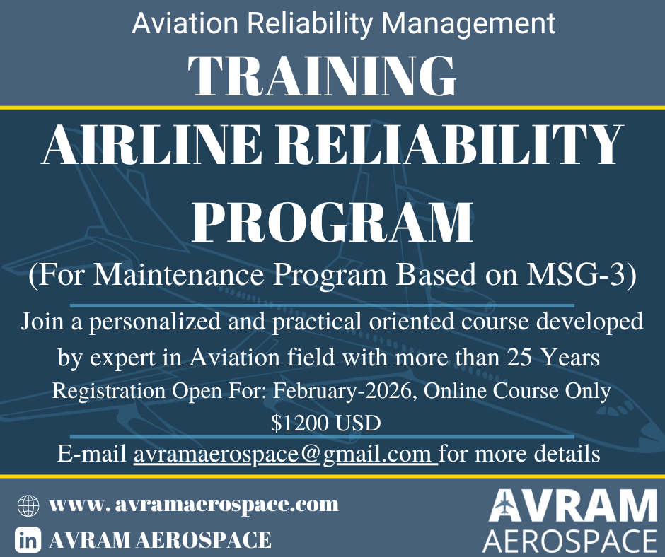 We offer 40 Hours hands-on Aircraft Operational Reliability course for Approved Maintenance Program developed based on MSG-3.